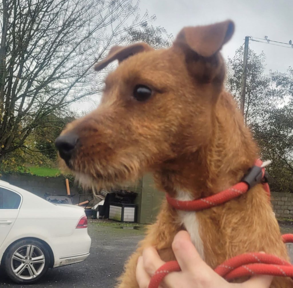 This very handsome , lively young man is an Irish Terrier mix. He’s approximately a year old and still a pup!! He could probably live with a female K9 companion, but definitely NO cats, small furries or feathers. Hurley will need someone with patience as he is quite head strong and will require ongoing training.
