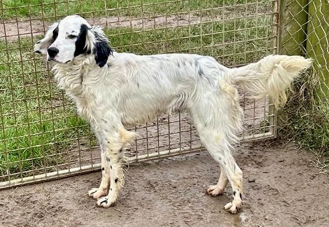 Axel is a male neutered English setter approx 1 year old. He has a lovely temperament, good with other dogs and very friendly with people. He is underweight so needs some TLC.